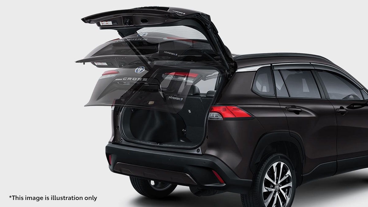 Dari sisi eksterior, Toyota Corolla Cross tampil modern dan berkelas. Desain grille depan yang tegas, lampu LED tajam, serta garis bodi proporsional memberikan kesan elegan sekaligus sporty. Ground clearance yang ideal membuat Corolla Cross nyaman dikendarai di berbagai kondisi jalan, baik perkotaan maupun luar kota.